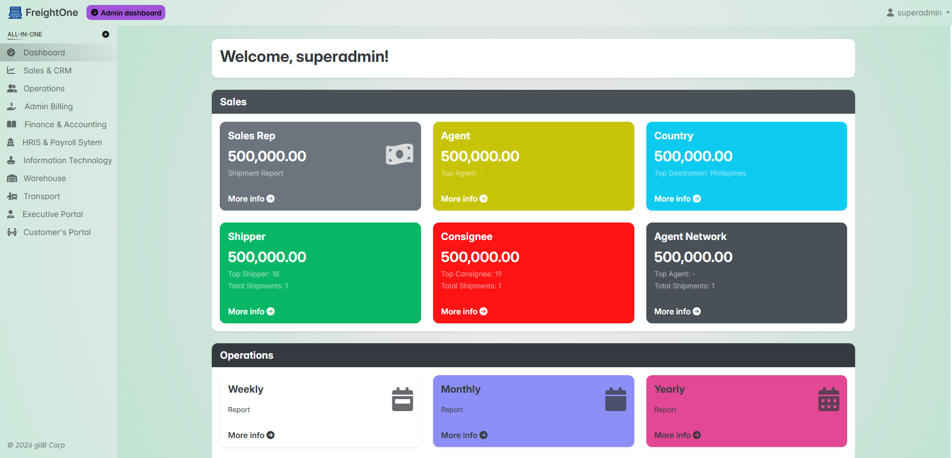 Manage shipments, customs documentation, warehouses, billing, and accounting